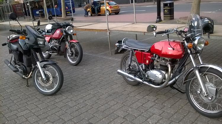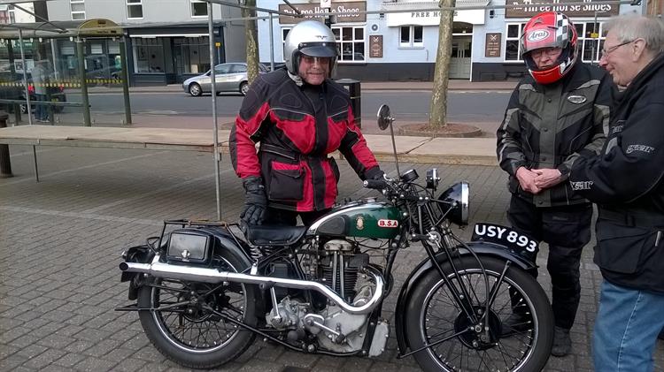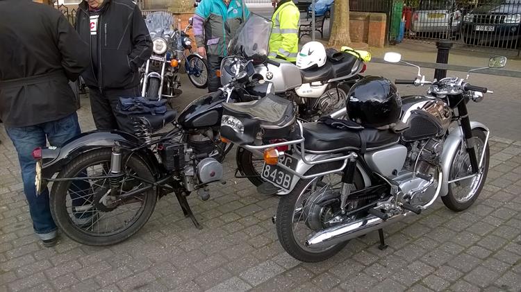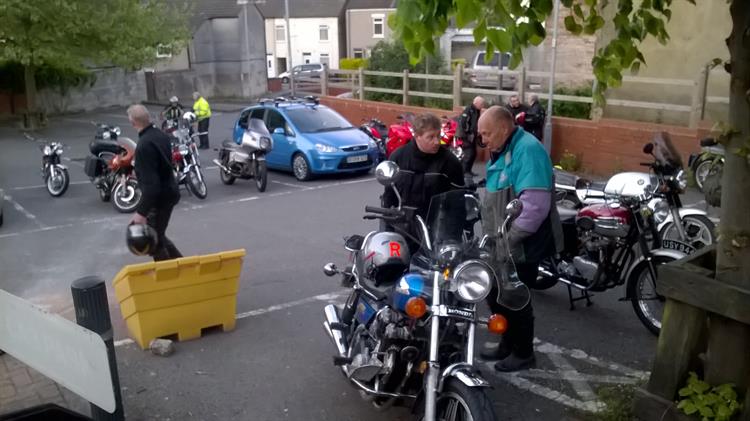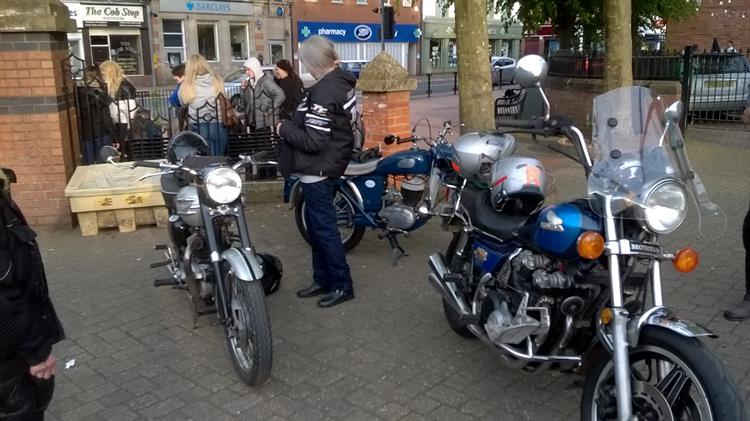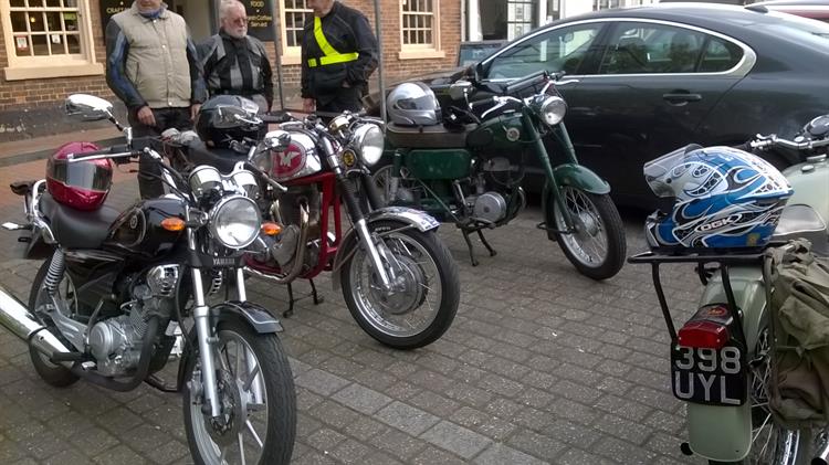 Barrie always finds a route with beautiful views and this was no exception. Twenty-four machines, including Lloyd and Tony on modern bikes, set off from Ripley Market Place on the Chip Shop Run. We passed through Ambergate, Shottle, Idridgehay,Kirk Ireton, past "my field" from last year, Wirksworth and Cromford to finish back in Ripley where the chippie had stayed open especially for us. Thanks again to Barrie for leading. He tells me that Gladys is slowly on the mend and we wish her a speedy recovery.