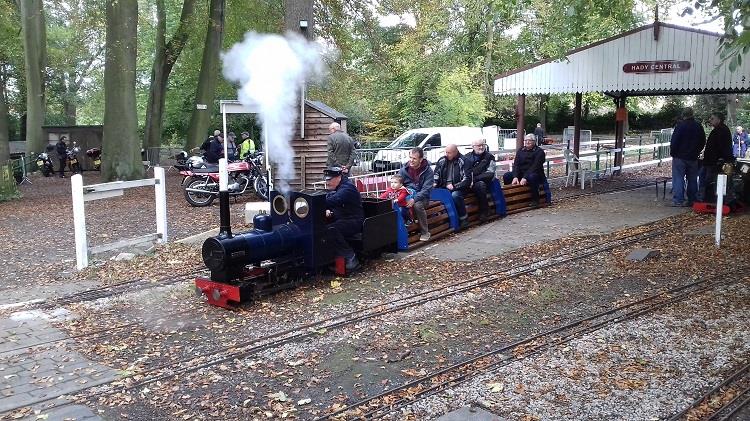 Seventeen machines set off from Ripley - straight into a traffic jam at the Excavator! We then rode through Oakerthorpe, Wessington and Blackwell to pass by Hardwick Hall, on to Calow to finish at Chesterfield Miniature-Railway. Derek, our leader, is a member and we were very well received. The tracks are very extensive and the infrastructure is impressive; all set in beautiful surroundings. We had rides on the trains and I must admit to being more excited that I should have been!